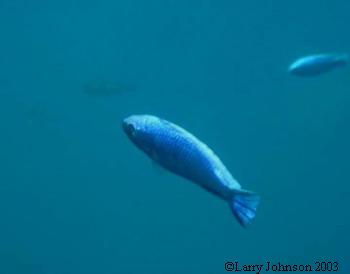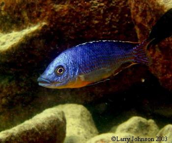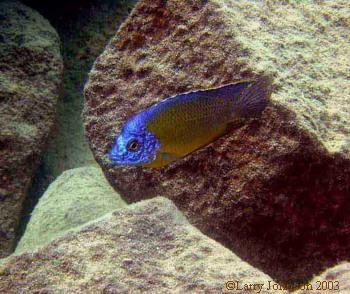 On our way to Likoma Island we stopped at Maingano Island and did a bit of snorkeling to cool down. It had been hotter than usual this year. Copadichromis chrysonotus swims near large boulders that are almost at the lakes surface. Depth here is around 35 feet.