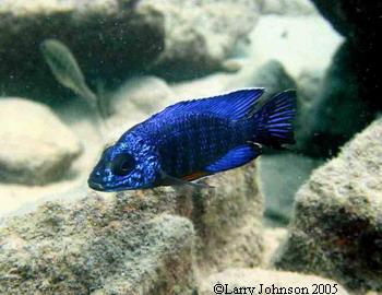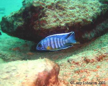 Eventually we returned to the west side of the lake (Malawi) and proceeded to dive daily and then camp overnight in a northerly direction. We dove at a new reef called Chitimba Bay "deep". Here we found a new Tropheop sp. variant. The males and females, as well as young fry, were brilliant yellow. A relatively new Aulonocara was not to shy of having his picture taken.