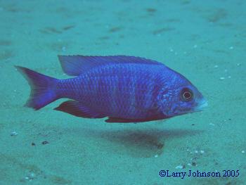 Cruising the outer limits of Mdoka Reef one can find B.Rhoadesii spawning. While Placidochromis phenochilus was attempting to pass me ,in the current, until I swooshed up the bottom. He came right over to see what tid-bits I stirred up but got his picture taken instead.